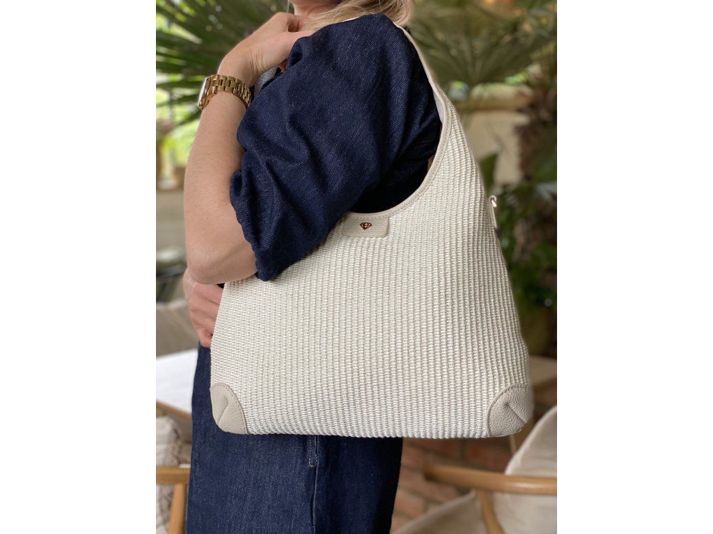 Italská kabelka z kůže a lýka v béžové barvě přímo voní létem a skvěle podtrhne vaše letní outfity. Kabelku můžete nosit na rameni, nebo si připnout i dlouhý popruh.