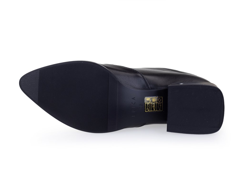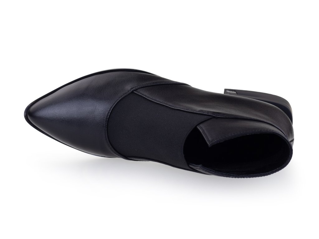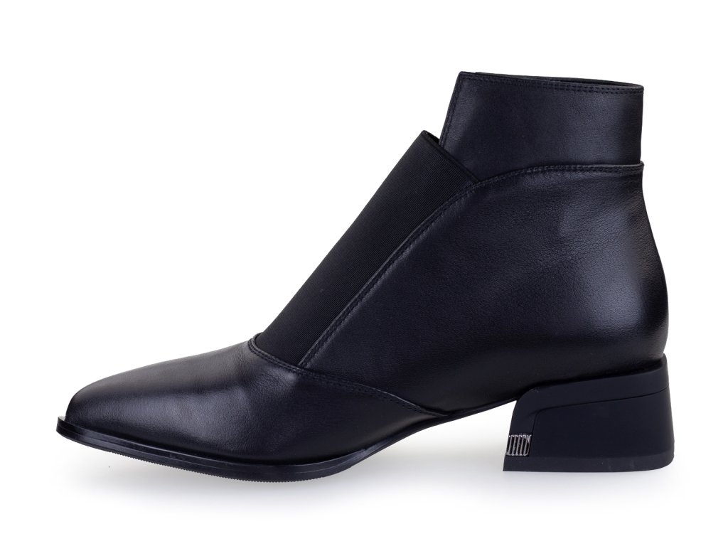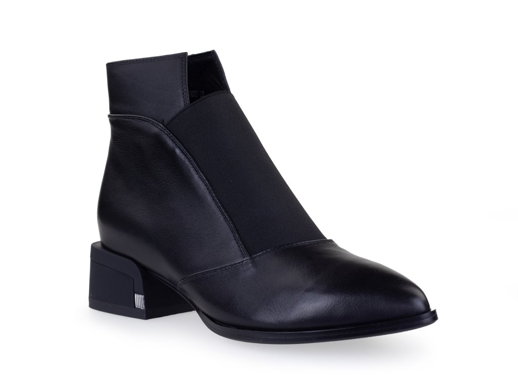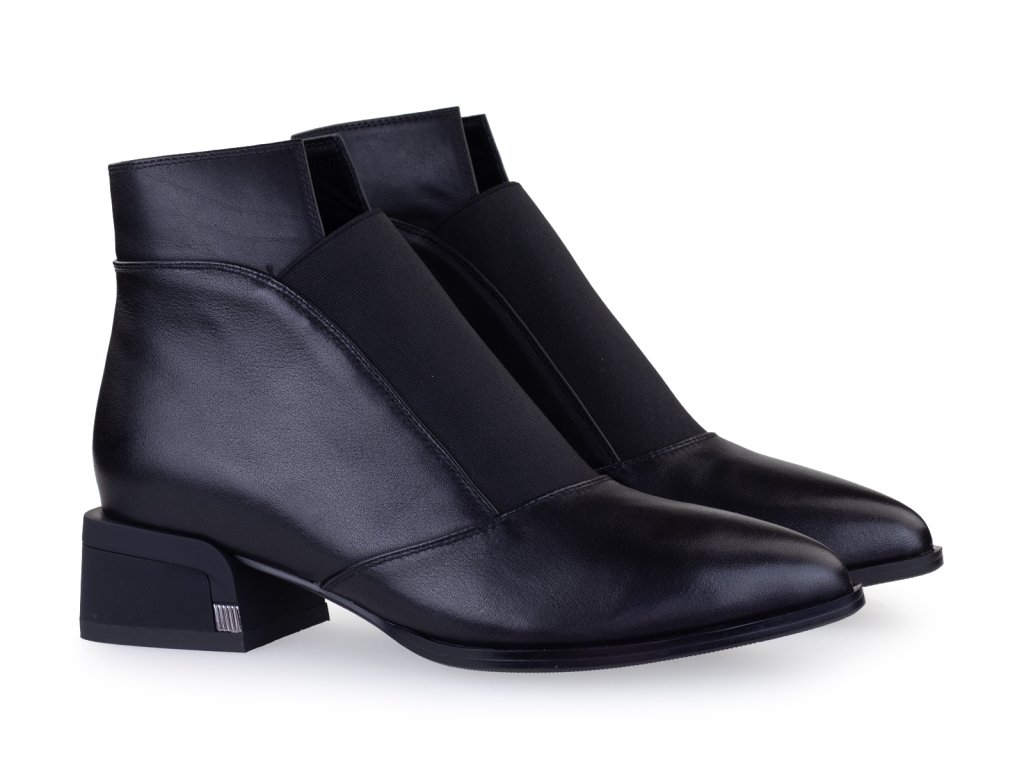 Kožené kotníkové boty s prozouvacím úpletem na nártu a nízkým stabilním podpatkem. Tento příjemný podpatek Vám prodlouží postavu, přitom je pohodlný na celodenní nošení. Tyto kožené boty do špičky se Vám budou krásně kombinovat s širokými nohavicemi, obujete je taky s černými punčochy k šatům.