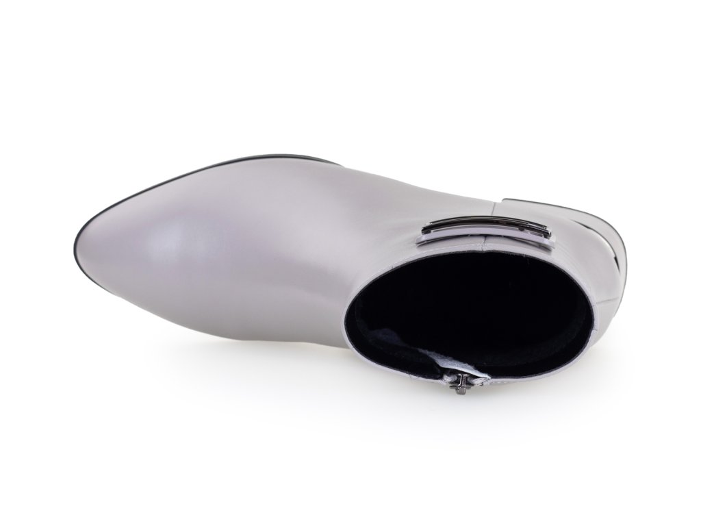 Boty jsou střiženy do mírné špičky a působí tak elegantně. Stříbrný detail na podpatku a spona na kotníku botu nazdobí. Obujte se pohodlně i stylově.