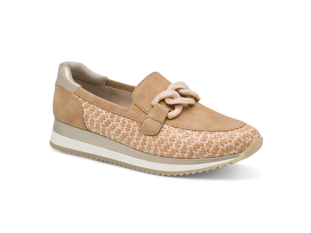 Krásné počasí je tu a s ním i lehké a prodyšné mokasíny, které je radost mít obuté bez ohledu na to, jak dlouhý máte den. Vyvýšené mokasíny v přírodní světle hnědé barvě jsou zdobené elegantní přezkou na nártu a budou se Vám perfektně kombinovat.