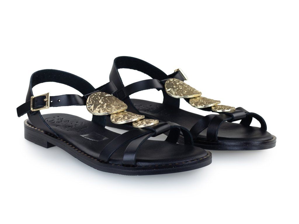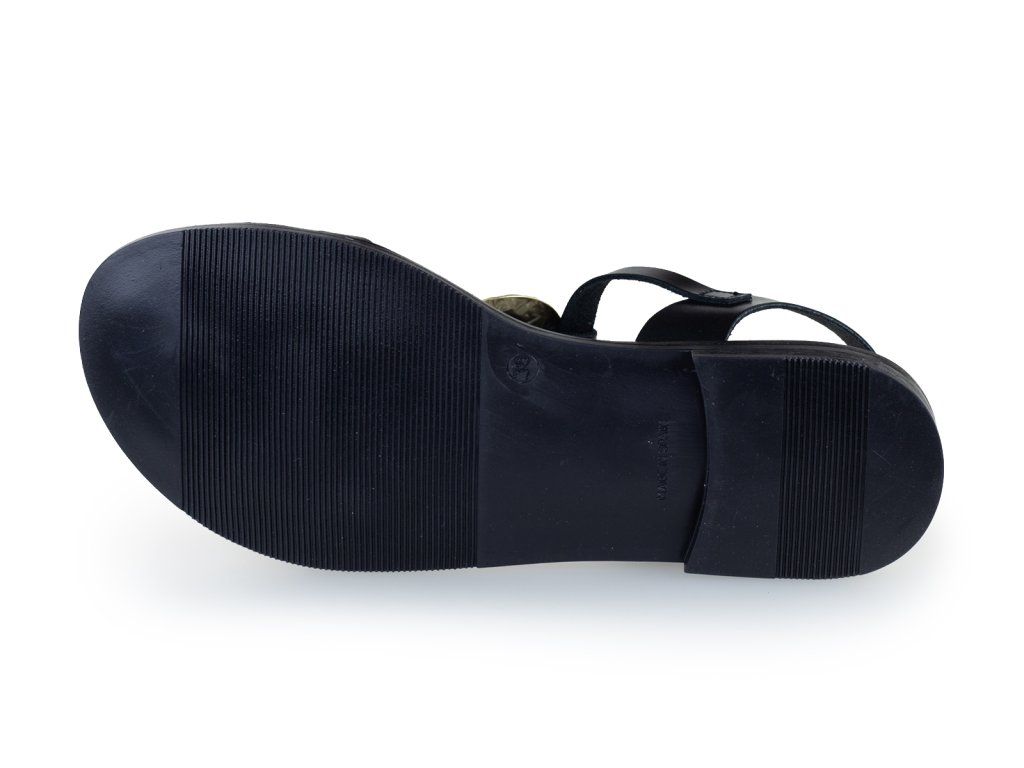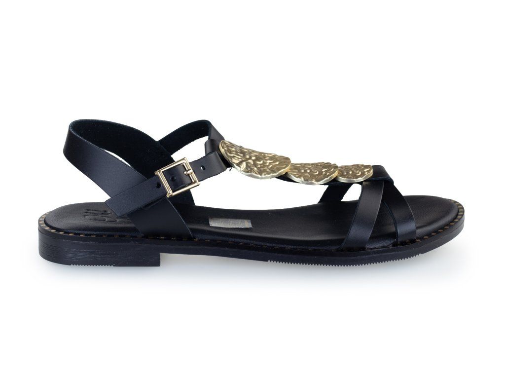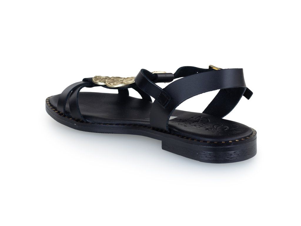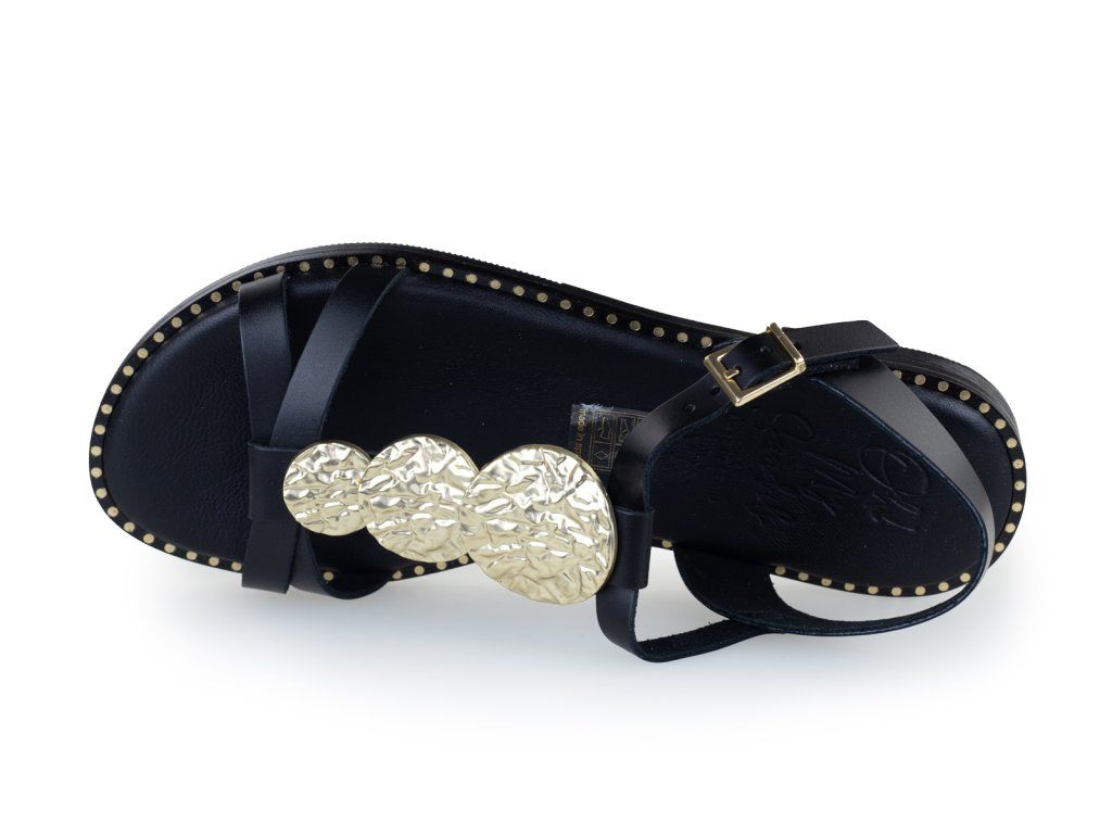 Dámské sandály s krásně měkkou stélkou. Černé sandály se zlatým zdobením na nártu vám ozdobí léto.