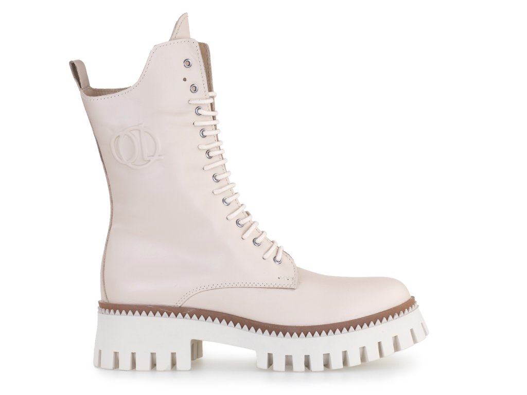 Olivia, dámské šněrovací polokozačky na platformě béžové