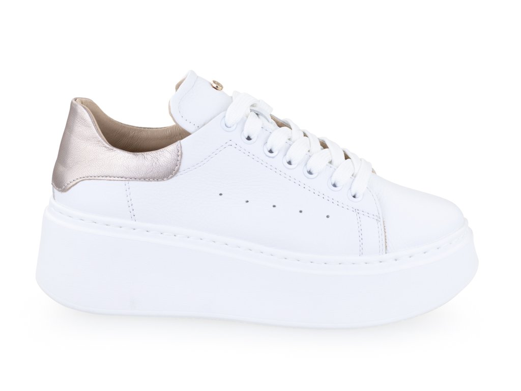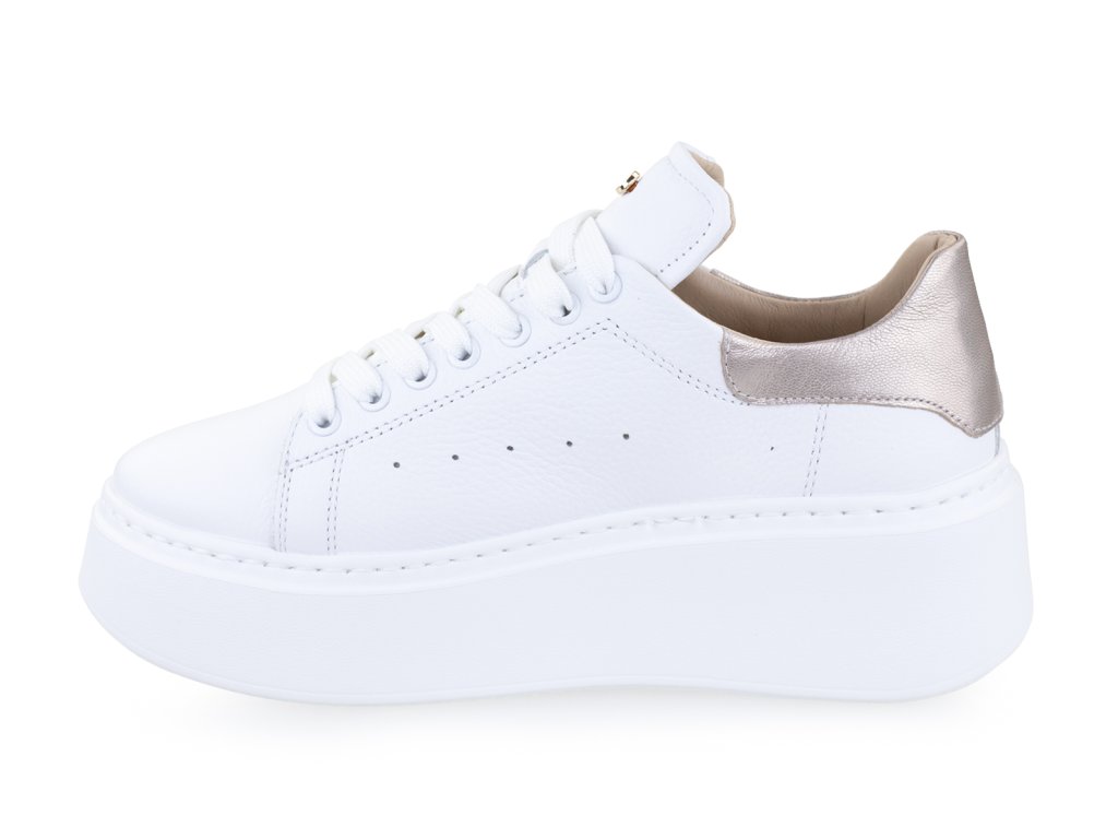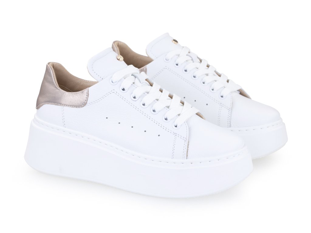 Tenisky jsou krásně lehké a navíc si přidáte pár centimetrů. Perfektně budou vypadat ke kratším nohavicím, širokým kalhotám a také ke sportovním šatům. Neváhejte a pořiďte si i Vy kožené bílé tenisky.