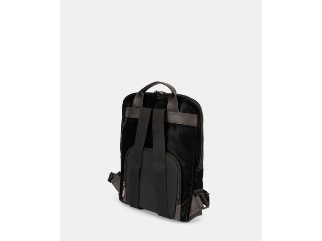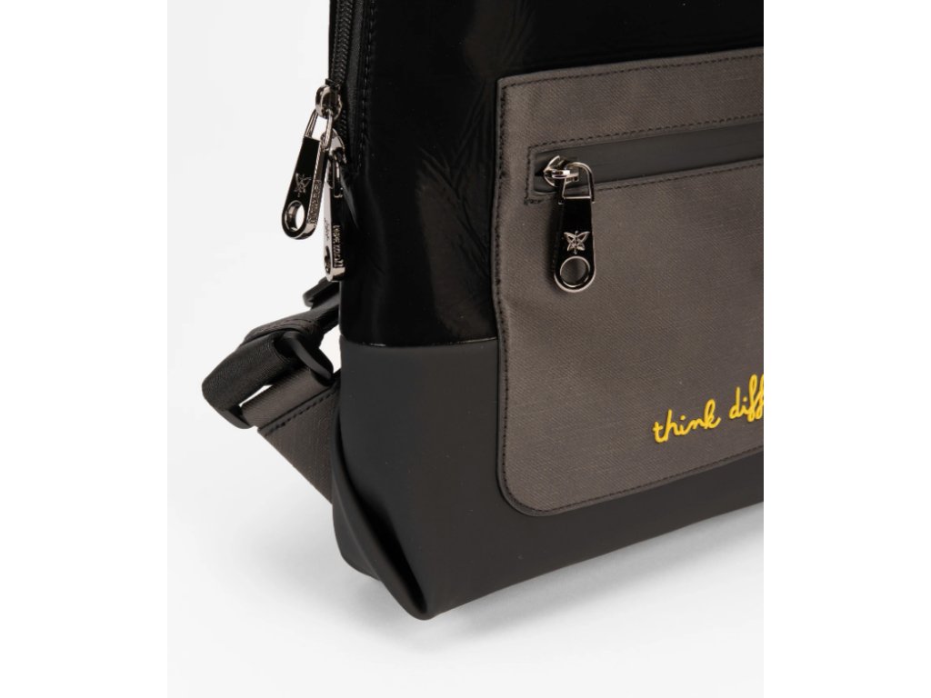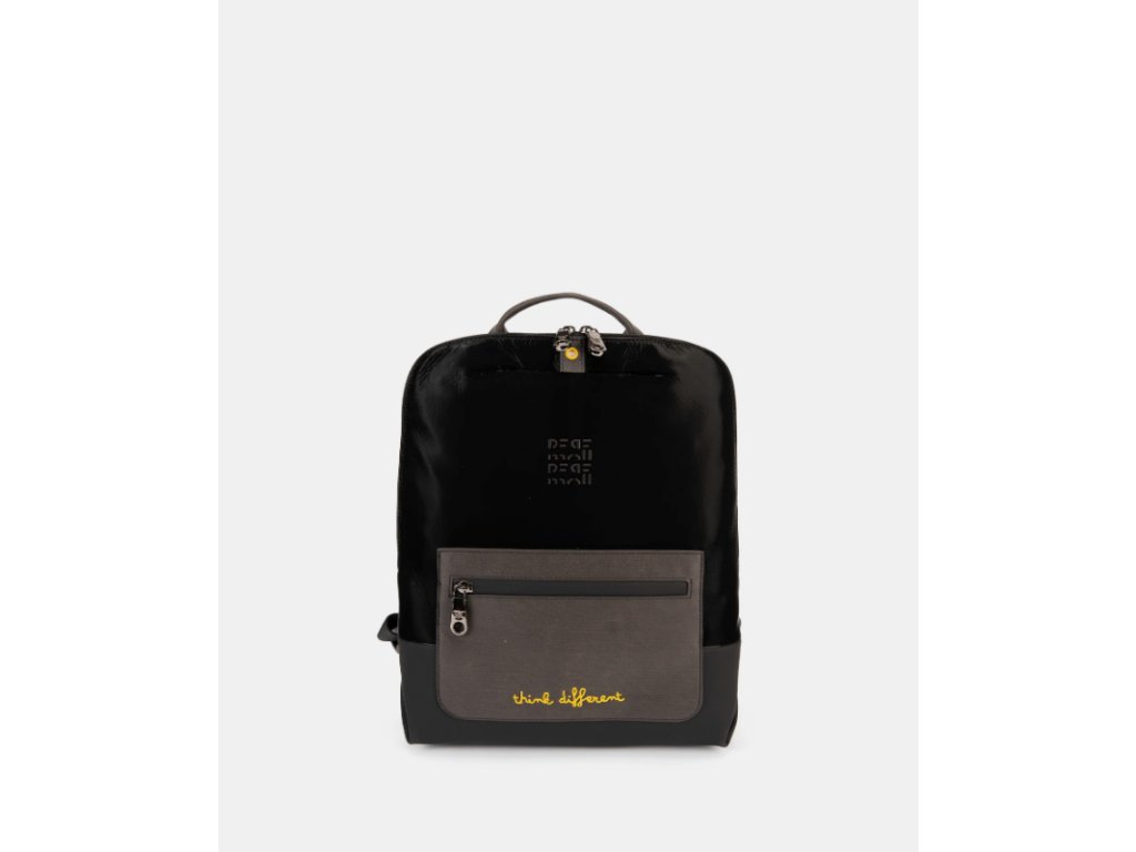 Dámský batoh od španělské značky Pepe Moll. Batoh je uvnitř vybaven přihrádkou na tablet, nebo menší počítač, kapsou na mobil a přihrádkou na zip. Na zadní straně i přední straně je přihrádka na zip.