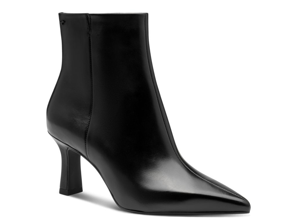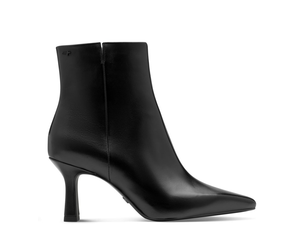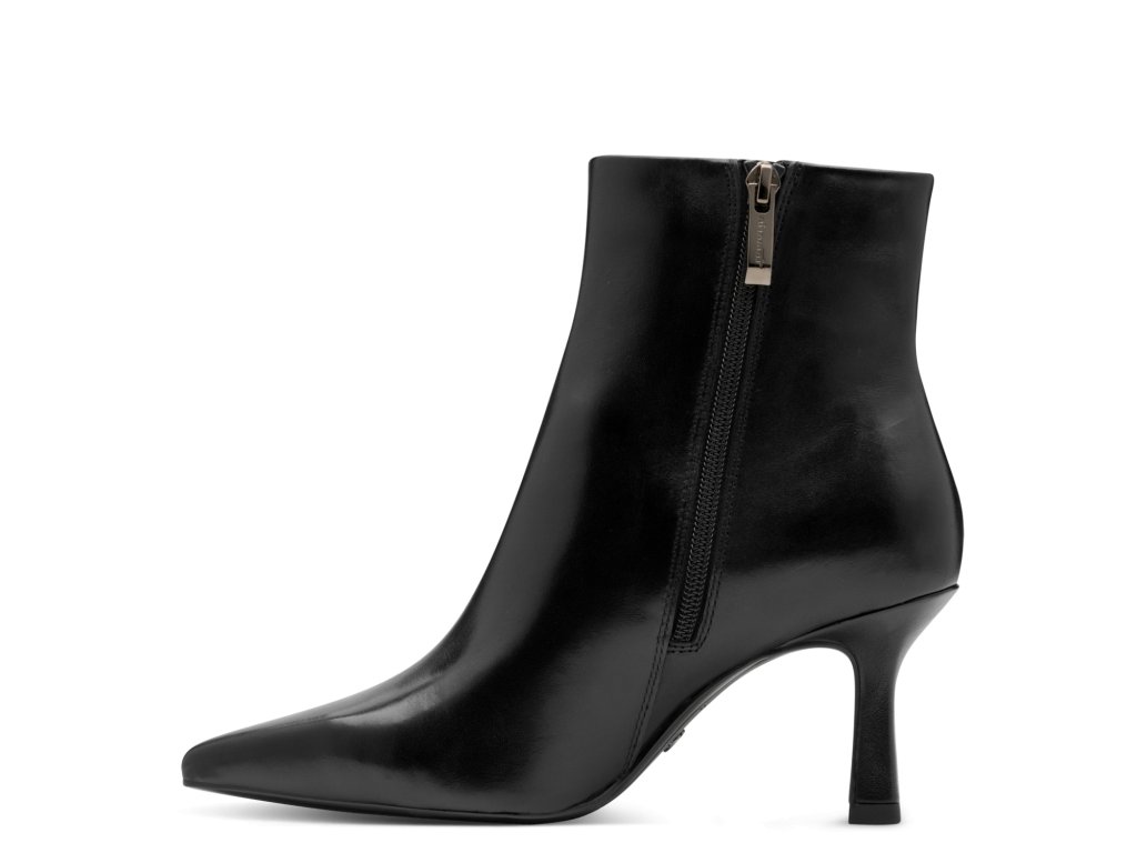 Černé kožené kotníkové boty na stabilním podpatku s elegantní špičkou, prodlouží postavu a přidají Vám pár centimetrů. Špička je hezky prostorná a nemusíte se tedy bát stísněného pocitu. Elegantní a stylové boty od značky Tamaris lehce doladíte k šatům nebo kalhotám.